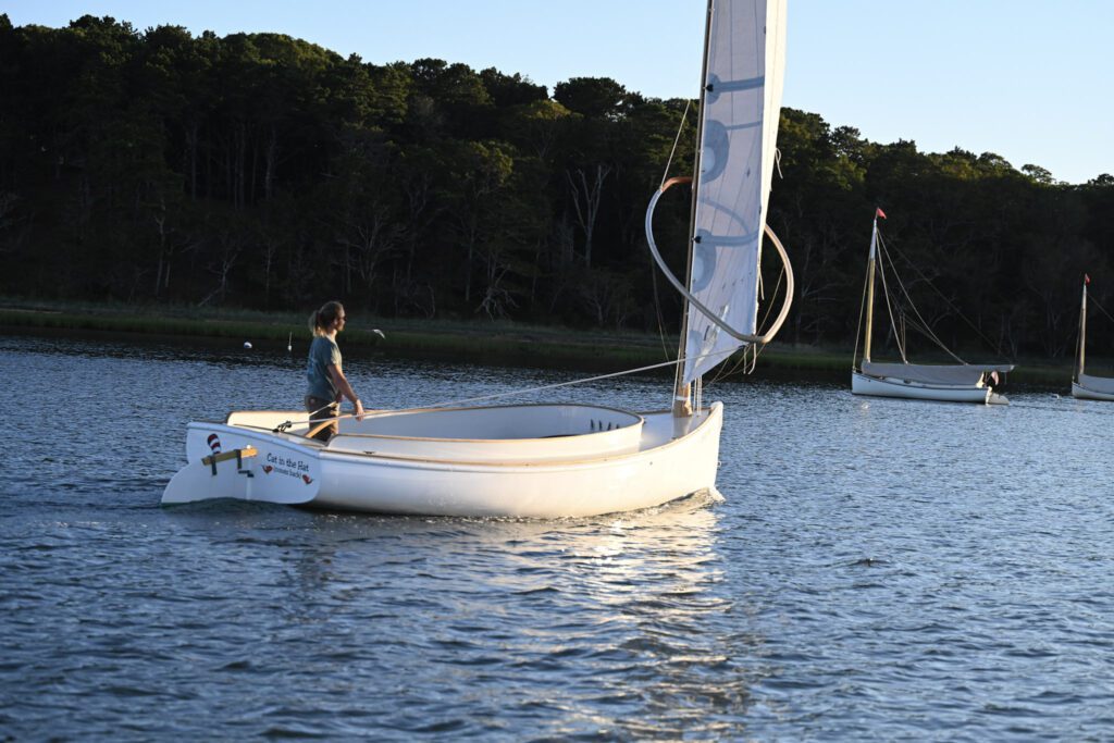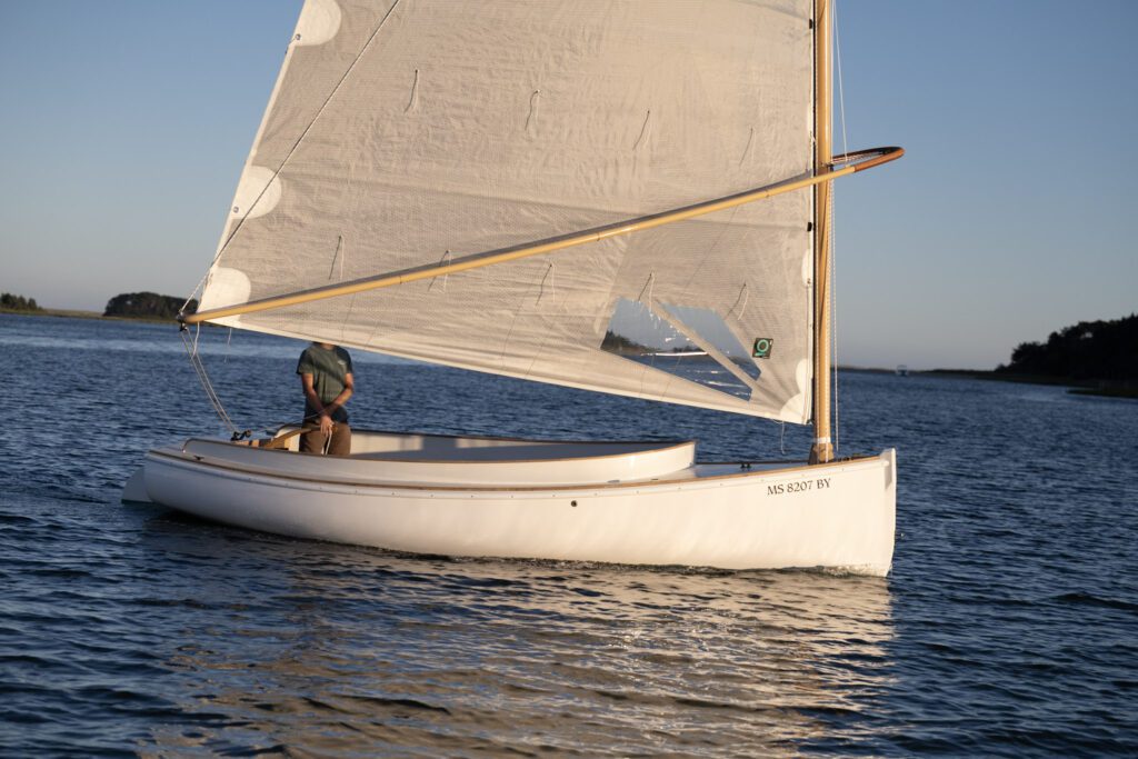 This custom 19’ catboat is designed for both performance and comfort. Built with a durable fiberglass hull, it combines classic lines with modern efficiency. The self-tacking wishbone rig makes sailing simple and enjoyable for short-handed crews, while the inboard electric motor offers quiet, eco-friendly power when needed. Ample storage beneath the seating keeps gear organized and out of the way, and the spacious cockpit provides plenty of room for family outings, weekend adventures, or a relaxing day on the water.