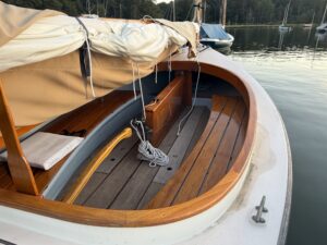 Be sure to check out Free Spirit, a traditional Arey’s 14’ Cat. The boat has been meticulously maintained to like new condition and is a must see if you want the look and feel of a classic Arey’s wooden 14’ Cat. She includes 2024 Torqeedo Travel electric motor w/ Travel battery, 2 mainsail, cockpit cover, varnished teak, spar fly, teak seats and centerboard enclosure, anchor and paddle. More photos to follow. Boat is on APBY mooring. Please contact Arey's Pond Boat Yard at 508-255-0994 to schedule a viewing.