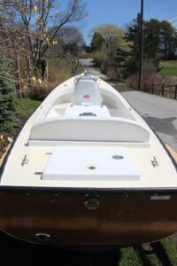 This 2009 center console has a cold molded Okuome and Meranti hull that is fiberglassed encapsulated. She is in very good condition and is well suited for outings on the bay or a lake. This beautiful open boat won the 2010 Wooden Boat Show in Mystic, Ct. for 1st place owner builder category. The boat has an inboard 14 HP Beta Marine diesel engine that is fresh water cooled with a built in fresh water manifold flush tank that is in the bow. She has a 15 gallon fuel tank and her top speed is about 6 knots. Included is a canvas cover, cushions, compass, running lights, horn and 3 bilge pumps - forward, aft and stern. There is a trailer included but it is not titled or registered. To schedule a viewing please call Arey's Pond Boat Yard at 508-255-0994.</>