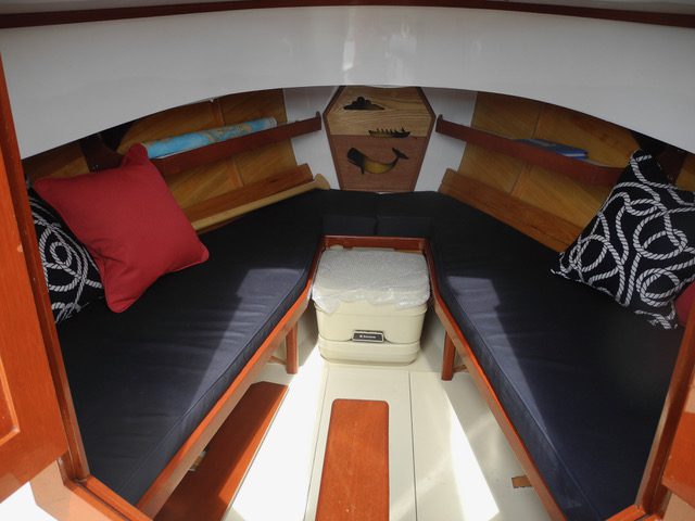 Caracal is a distinctive catboat built for comfortable or competitive sailing, rigged to enable single-handed sailing but also with room for a crowd, she seats six to eight adults comfortably. Caracal provides the perfect escape, cruising either by sail or by the electric inboard motor. Accommodations include: two berths, porta-potty, opening porthole, electric or diesel inboard motor with lithium-ion battery and folding prop. Both easy to handle, and stabilized by the benefits of the gaff rig, Caracal crew and guests do not even need to move to windward when tacking on 12 knots of wind.